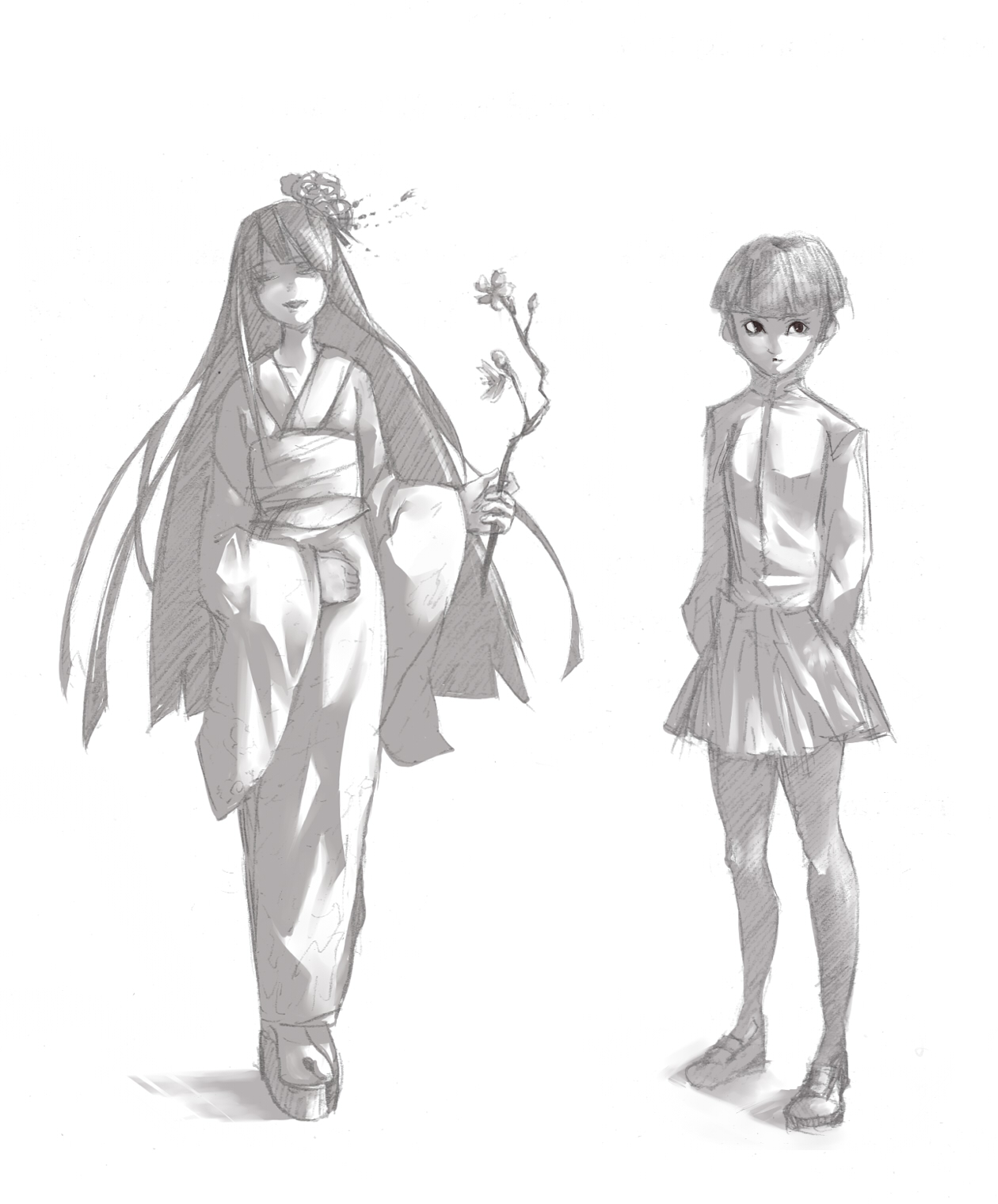 一枚は線画がアナログです。おかっぱとぱっつんの人しかいない学校の生徒会長と副会長。