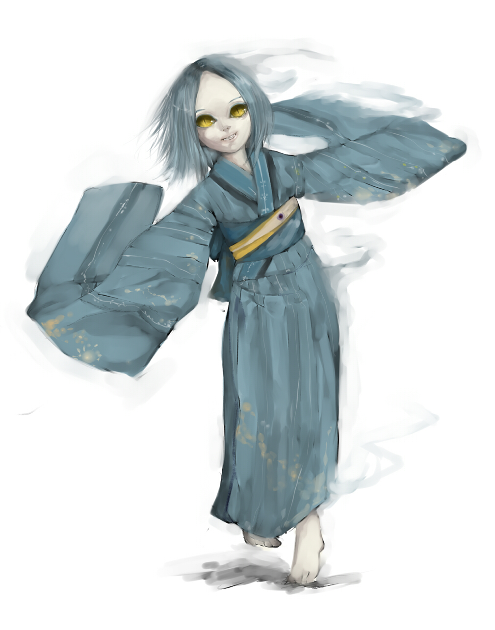 kyokou_hukujuを二次元女体化すると『服は浴衣で、猫目で水髪のセミロング+関西弁でおでこ出しで常識に囚われない感じのキャラ』のようだ