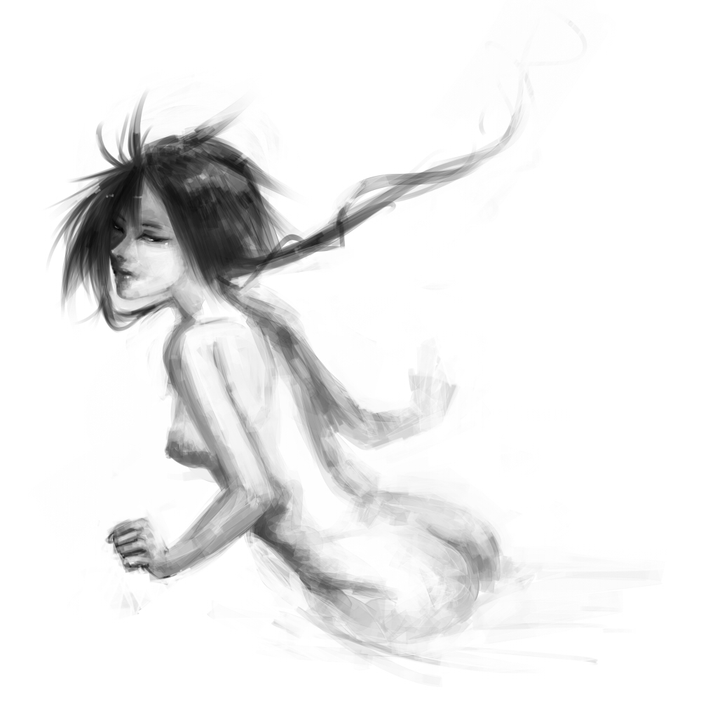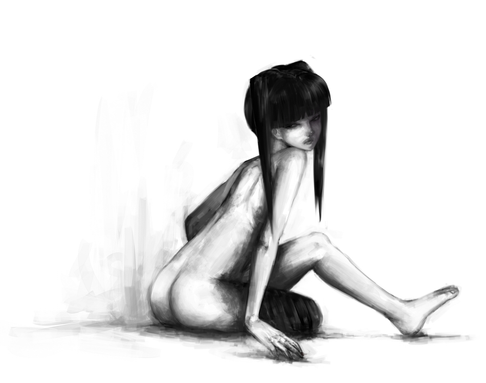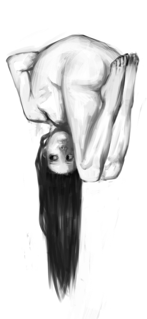 宙吊りの女の尻にやろうと思ったものの、「なんか違う」と思いそのままただの裸体に。